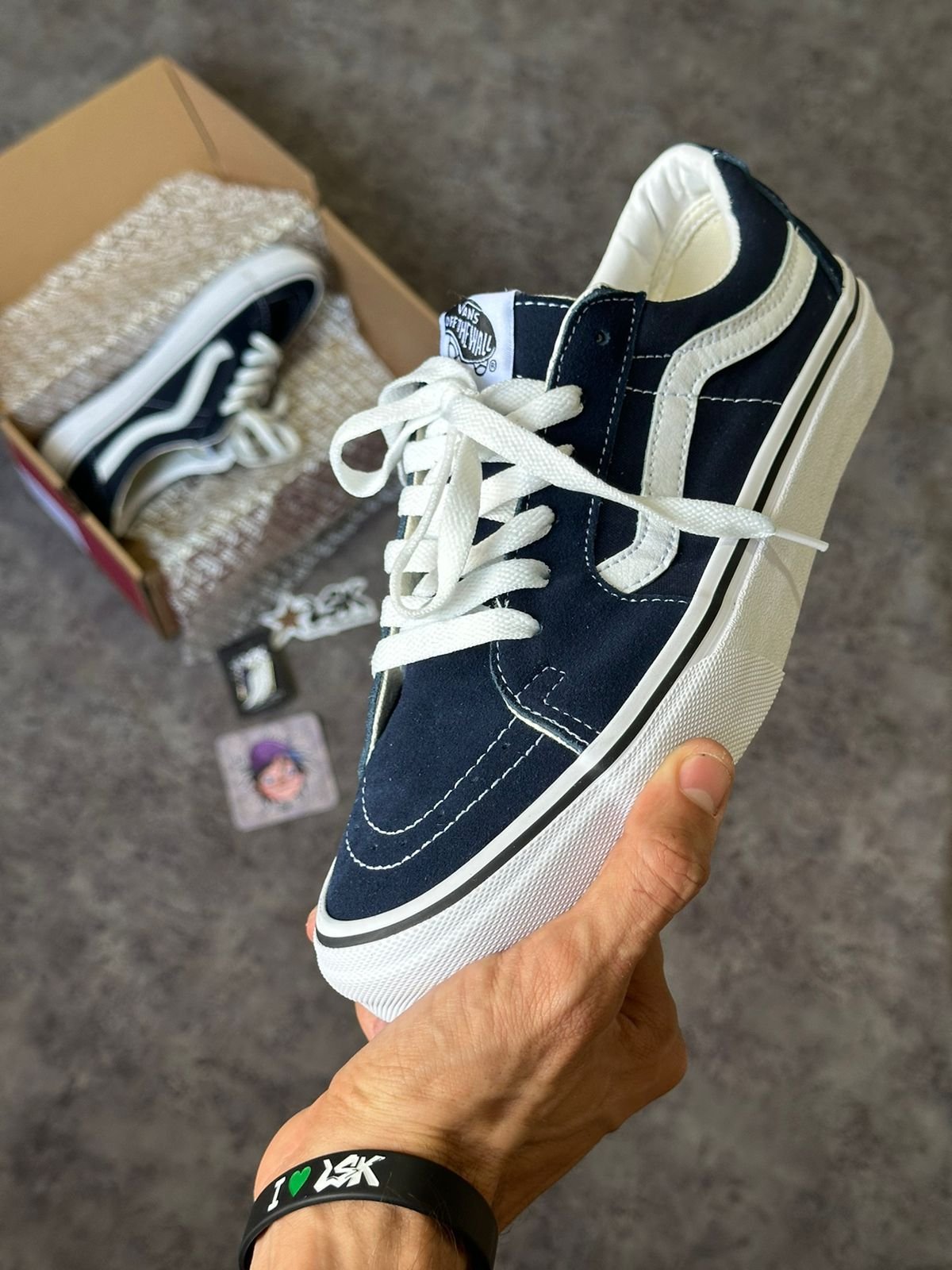 El Sk8-Low, una versión de la legendaria silueta de corte alto de Vans, está fabricado con una variedad de colores y materiales para ofrecer la estética familiar de los Sk8-Hi en una silueta baja. Con un resistente empeine de lona y gamuza, al igual que su homóloga más alta, este estilo con agujetas también incluye puntas reforzadas, cuellos acolchados de soporte y las características suelas de goma tipo waffle.