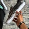 4 RESEÑAS EN TENIS CLáSICOS NEGROS SLIP-ON CHECKERBOARD PEWTER VANS UNISEX