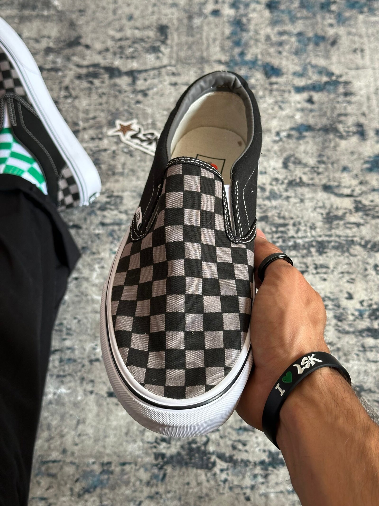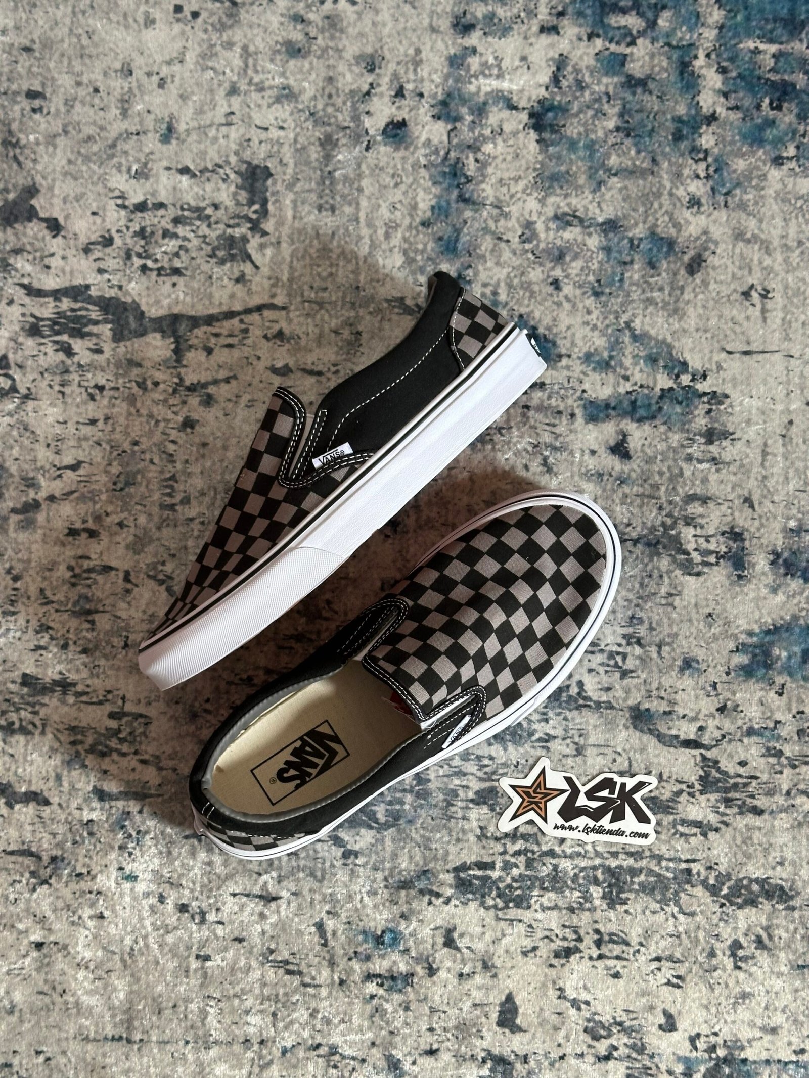 Tenis Clásicos Negros Slip-On Checkerboard Pewter Vans Unisex - Lsktienda