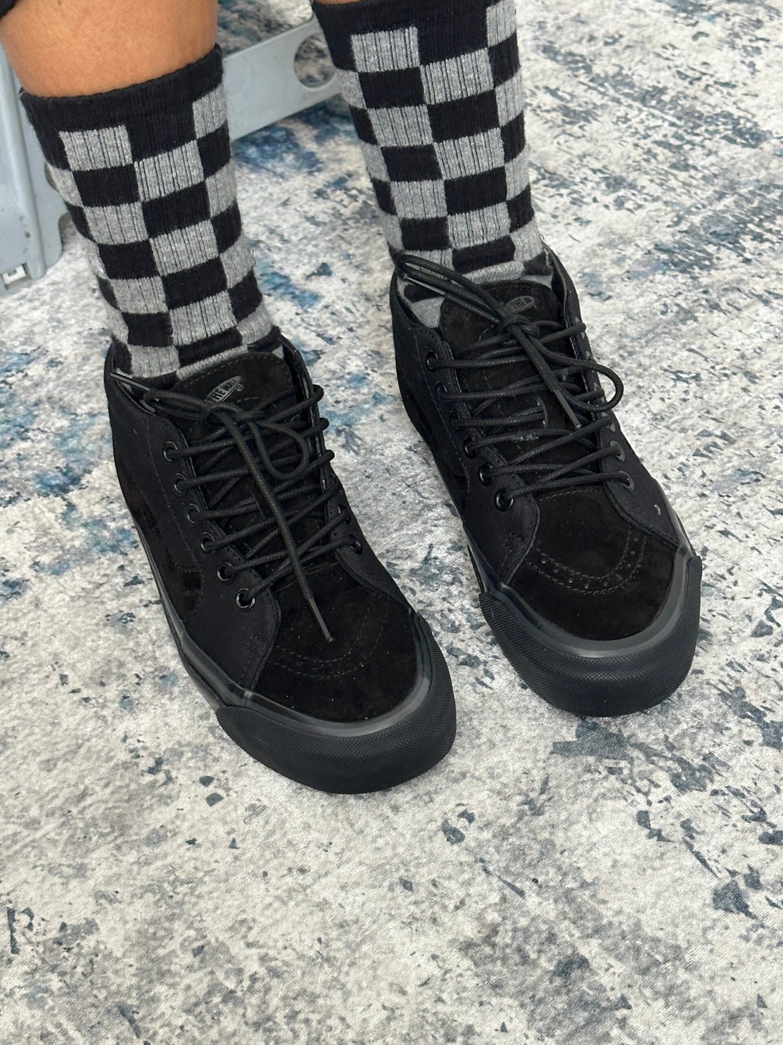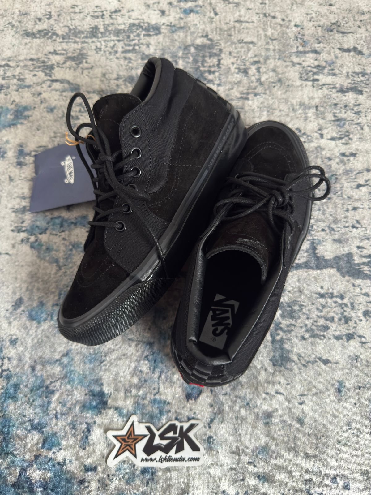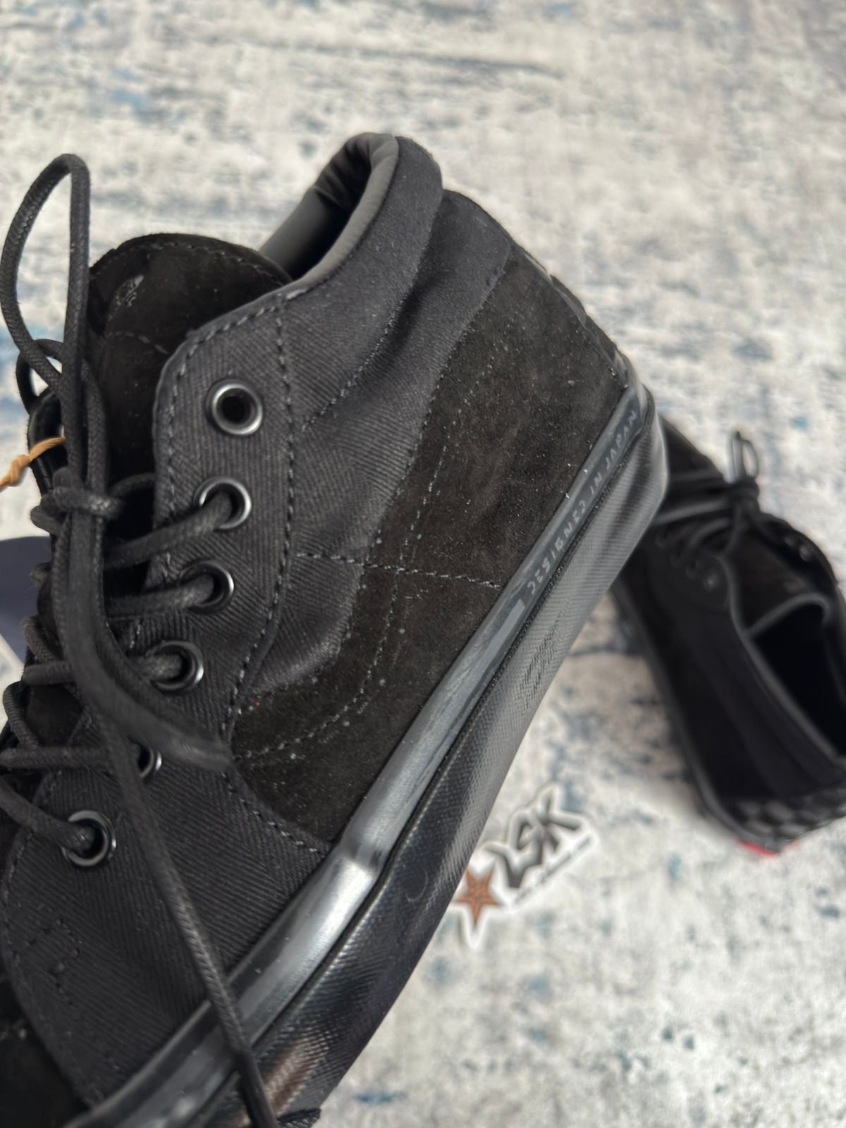 Eleva tu estilo con las Vans Sk8-Mid Premium en color negro total. Esta silueta de media caña combina lo mejor del diseño clásico con una estética moderna y urbana. Su construcción acolchada y materiales premium ofrecen una sensación de confort en cada paso, perfecta para el uso diario, sin importar si estás en la calle o sobre la tabla.