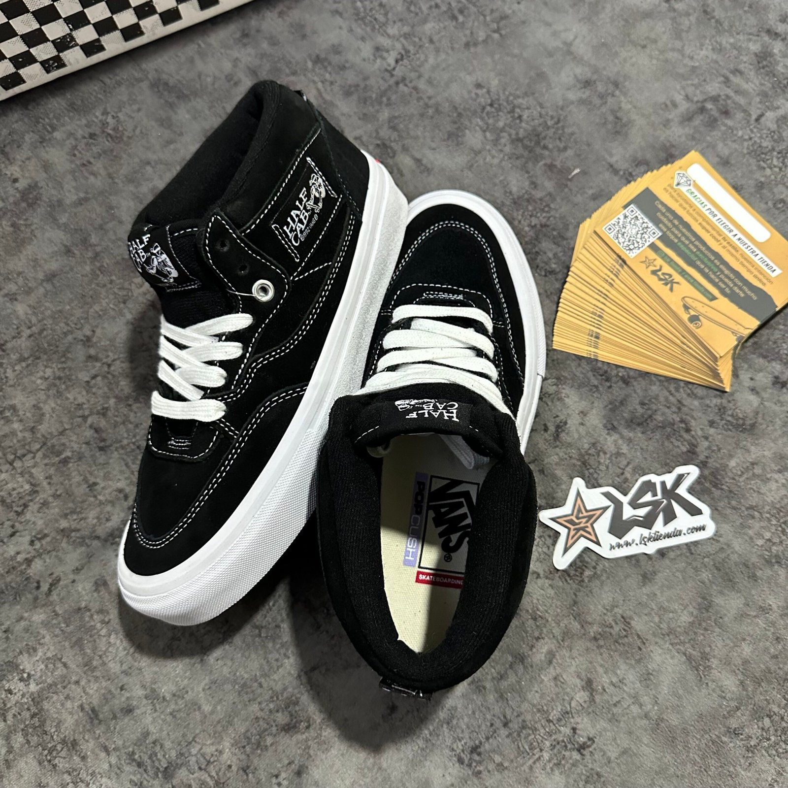 Las inconfundibles Half Cab de Steve Caballero, un modelo de zapatillas de skateboarding tradicional actualizado para ofrecer un mejor rendimiento, han sido rediseñadas para ofrecer a los skaters aquello que necesitan para lograr una progresión óptima. Dotadas de unas palas completamente rediseñadas, un contrafuerte moldeado, una lengüeta con correas de fijación y un refuerzo DURACAP™, ofrecen un ajuste perfecto, así como un mayor nivel de transpiración y resistencia allí donde los skaters más lo necesitan. La tira protectora de goma dividida en dos partes, junto con la puntera más resistente, garantizan un mayor contacto con la tabla, mientras que la suela de goma, que ha hecho famosa a la marca Vans, ha sido rediseñada y se ha refinado aún más con el compuesto de goma SICKSTICK™ y un vástago interno en el talón para ofrecer más agarre, una mayor sensibilidad de la tabla, más sujeción y más durabilidad.