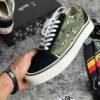 Se trata del modelo de Vans x Undefeated con base de lona estampada con el mítico logo en forma de herradura al estilo de los años 2000. Sobre este material, superposiciones de ante elevan el modelo. Para terminar de reverenciar la tienda de California, un aplique de plastico se ha colocado sobre los cordones con la inscripción “UNDFTD”.