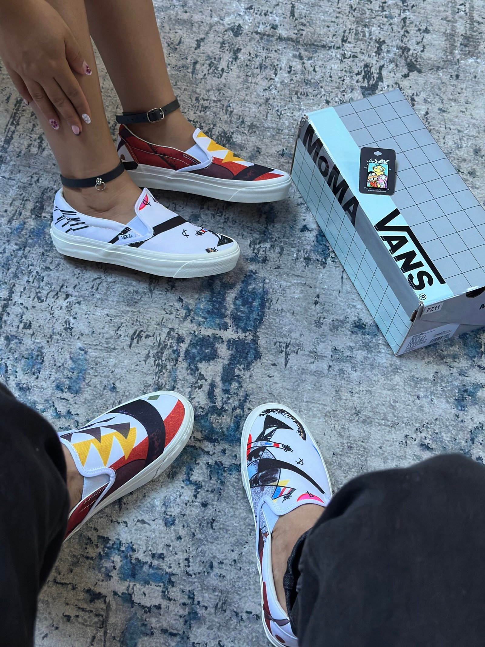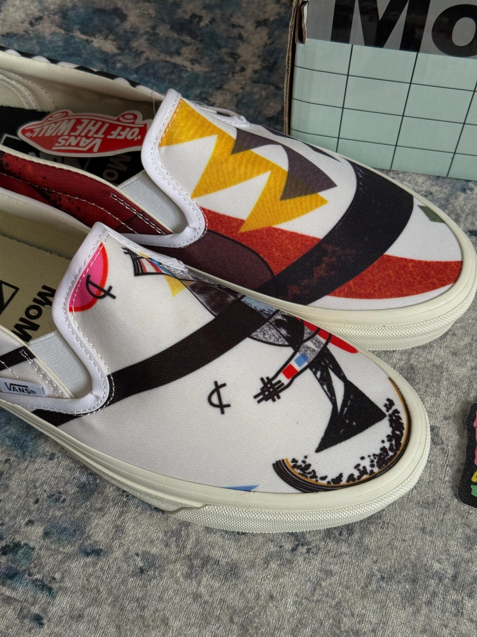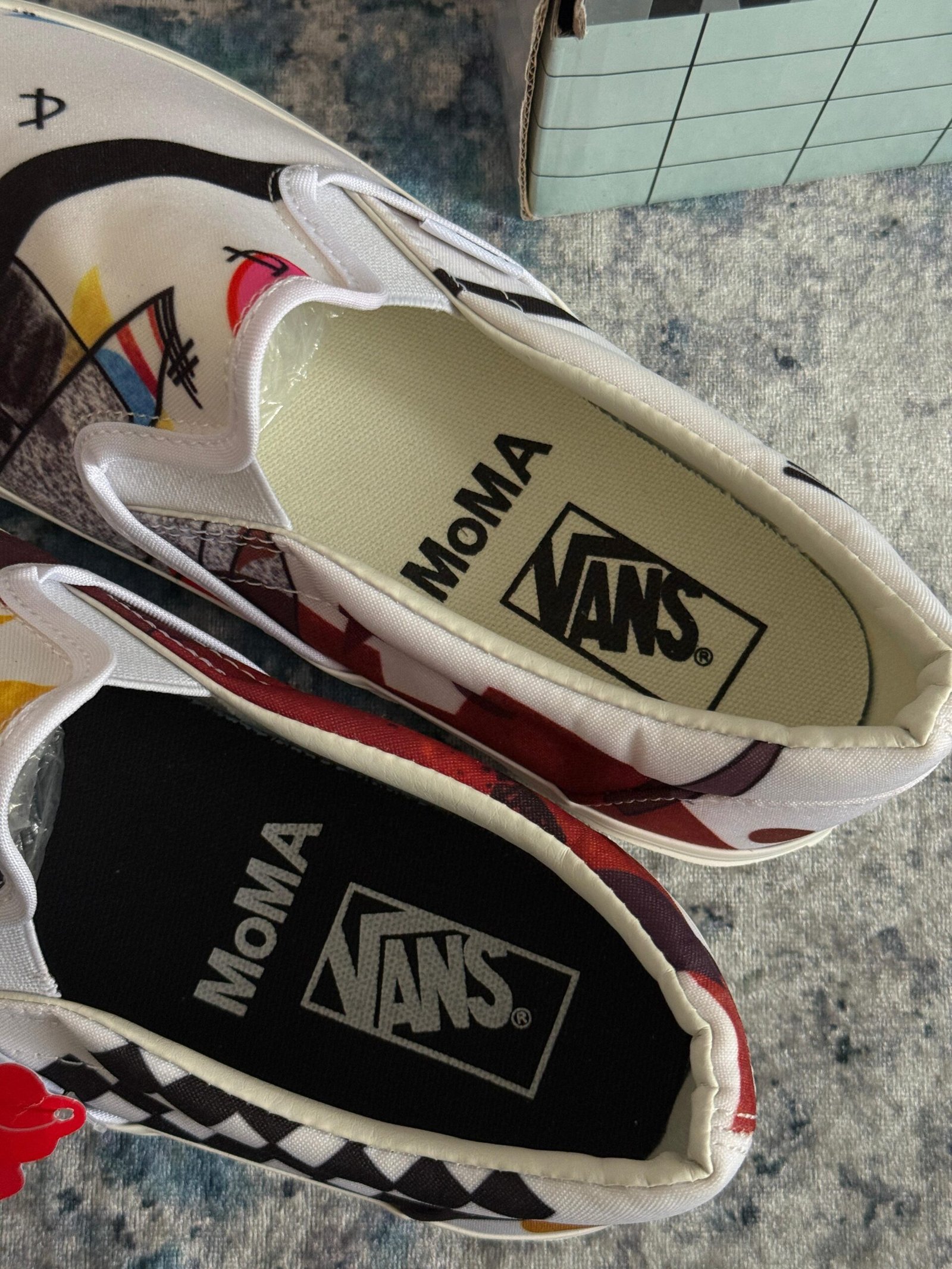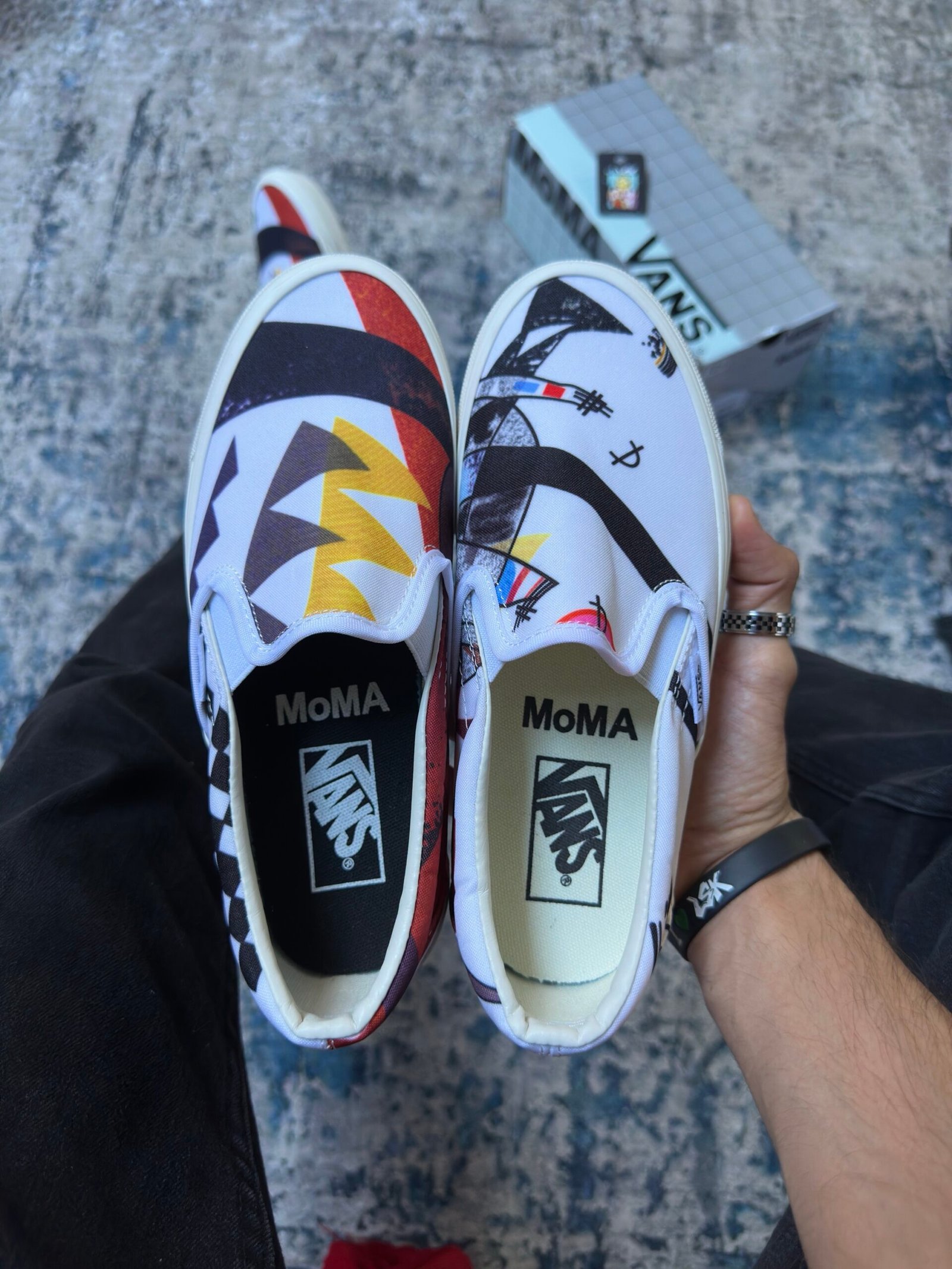 Explora el arte con cada paso. Las Vans Slip-On MoMA son mucho más que unas zapatillas: son una pieza de colección inspirada en las obras modernas del Museum of Modern Art (MoMA). Esta colaboración única fusiona el diseño icónico de Vans con un estampado artístico multicolor que representa geometrías abstractas, checkerboards y contrastes llenos de energía visual.